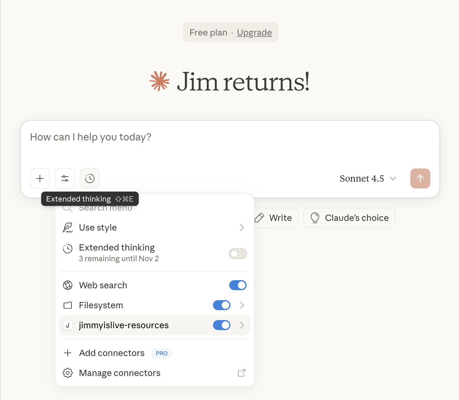 Prompt: I have a venv setup inside .venv. I want to write an MCP server in python. It should provide capability to list and read resources. The resources are rooted in the url https://jimmyislive.dev . I want to be able to read the posts on the site and also the books available at https://jimmyislive.dev/books/. I don't need to get the book contents. I only need to list the books and their authors and urls where the book can be obtained.